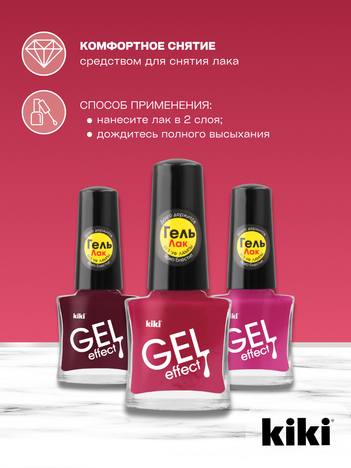 Лак для ногтей Kiki GEL EFFECT, тон 71 темно-розовый, 6 мл. 158 ₽