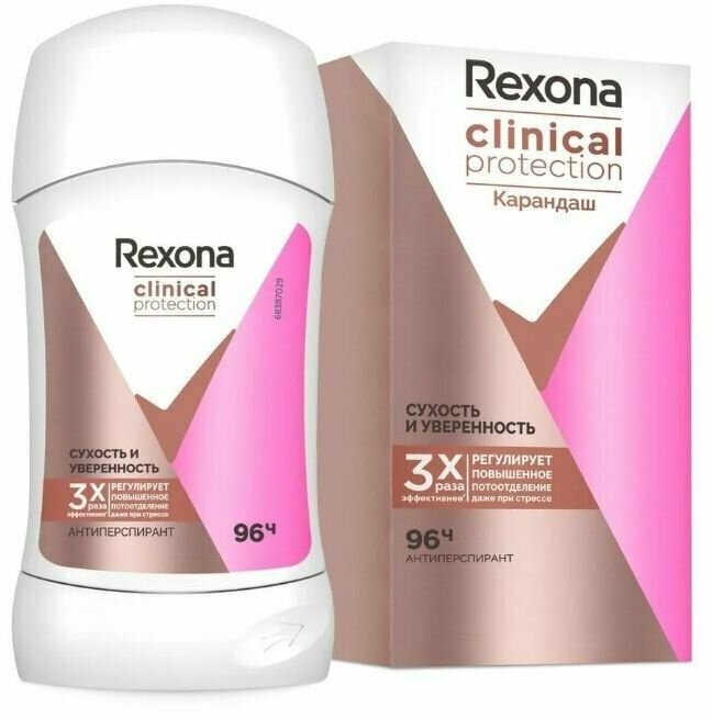 Rexona Clinical Protection антиперспирант-дезодорант карандаш Сухость и Уверенность 40 мл