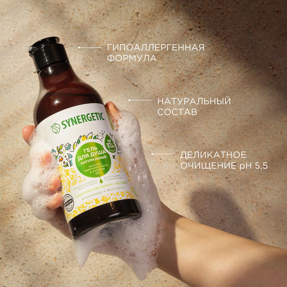 Гель для душа SYNERGETIC "Сицилийский лимон и ветивер", 380 мл информация:
