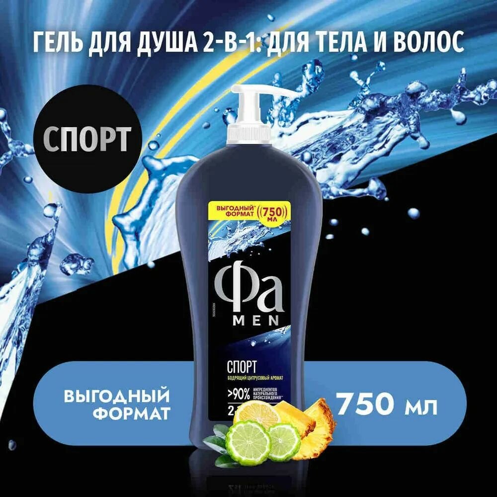 Гель для душа Fa Men Спорт 750 мл гель/для душа/мужской/для волос 620 ₽