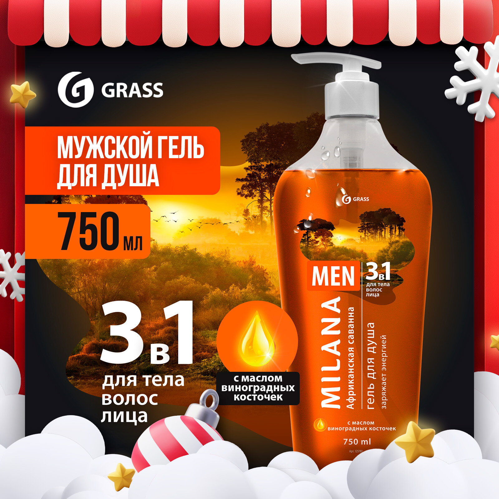 10 цен на Гель для душа Grass Milana MEN Африканская саванна с маслом виноградной косточки (флакон 750 мл)