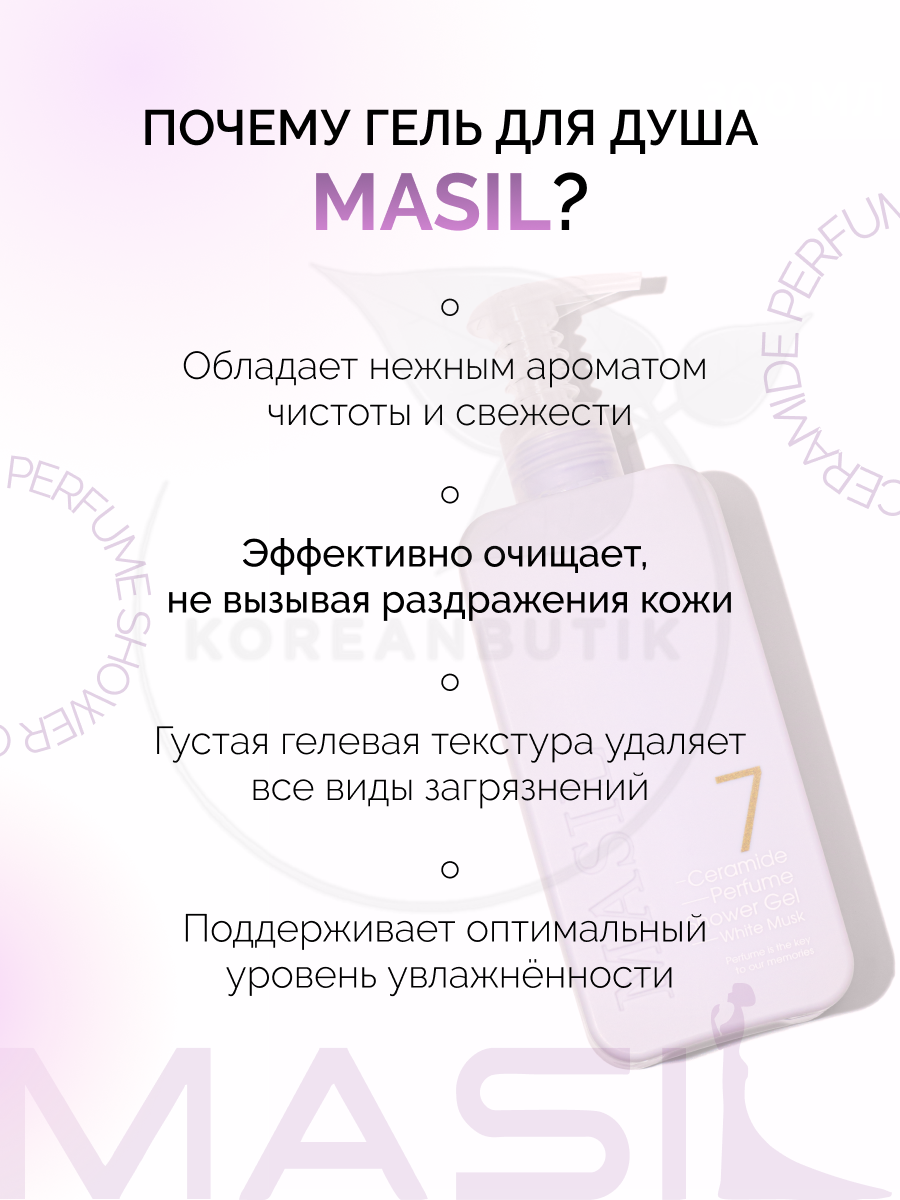 Отзывы на MASIL Гель для душа питательный парфюмированный с керамидами и ароматом белого мускуса 7 Ceramide Perfume Shower Gel, White Musk, 300 мл