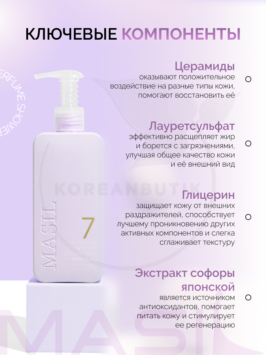 MASIL Гель для душа питательный парфюмированный с керамидами и ароматом белого мускуса 7 Ceramide Perfume Shower Gel, White Musk, 300 мл информация: