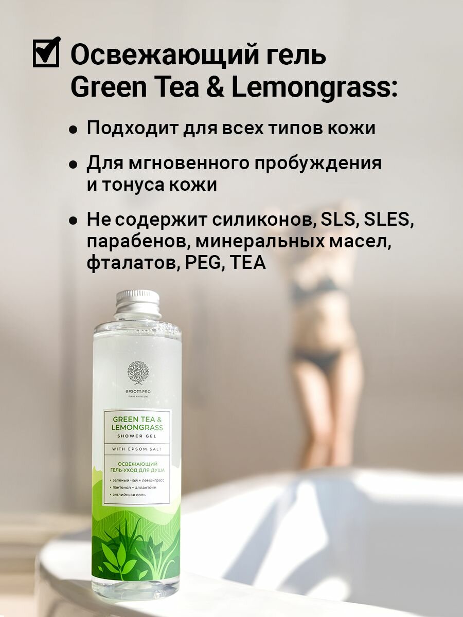 Освежающий гель-уход для душа GREEN TEA & LEMONGRASS с английской солью 250мл информация: