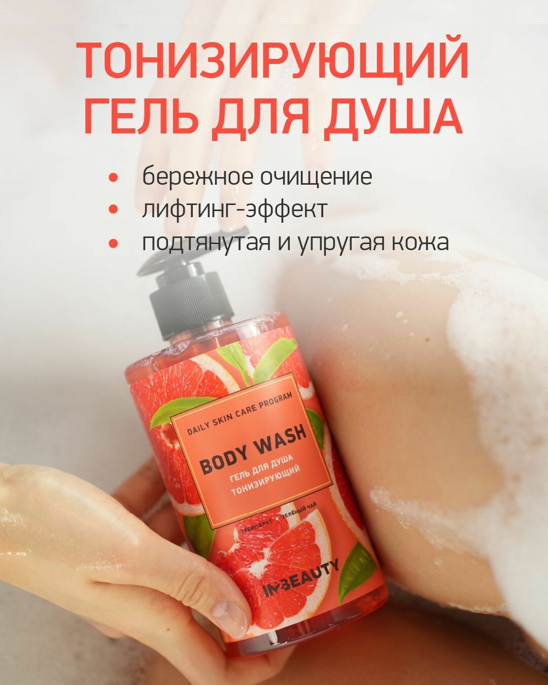 IN2BEAUTY/ гель для душа тонизирующий с маслами грейпфрута, зелёным чаем, освежающий, женский, мужской, с дозатором 460мл информация: