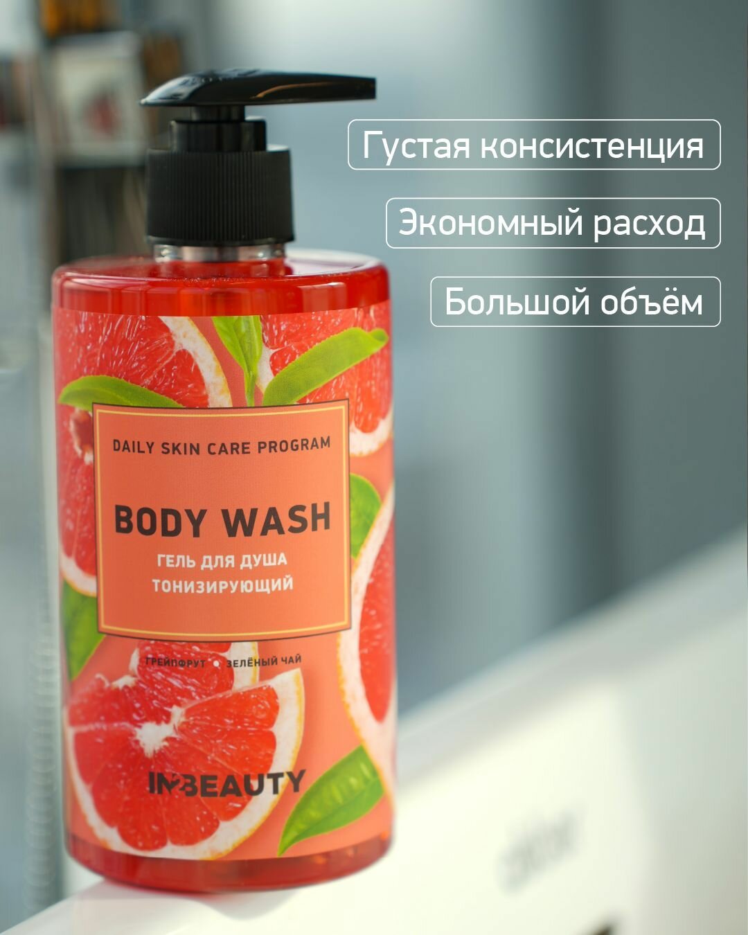 10 цен на IN2BEAUTY/ гель для душа тонизирующий с маслами грейпфрута, зелёным чаем, освежающий, женский, мужской, с дозатором 460мл