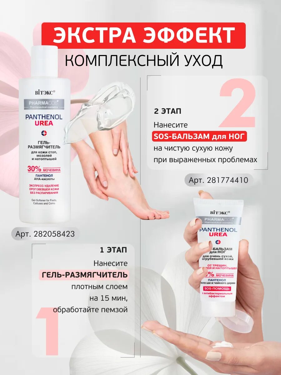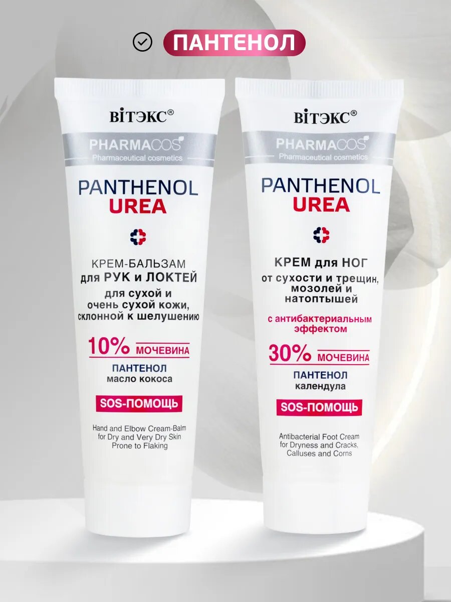 Бальзам для ног витэкс, PHARMACOS PANTENOL UREA, для очень сухой огрубевшей кожи от трещин, мозолей и натоптышей, 75 мл