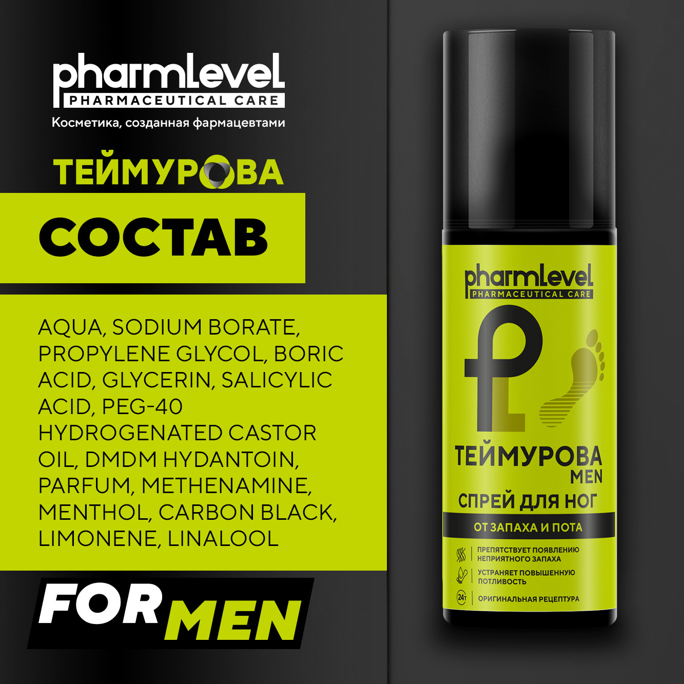 Дезодорант для ног от запаха и пота теймурова MAN 150 мл / Мужской информация: