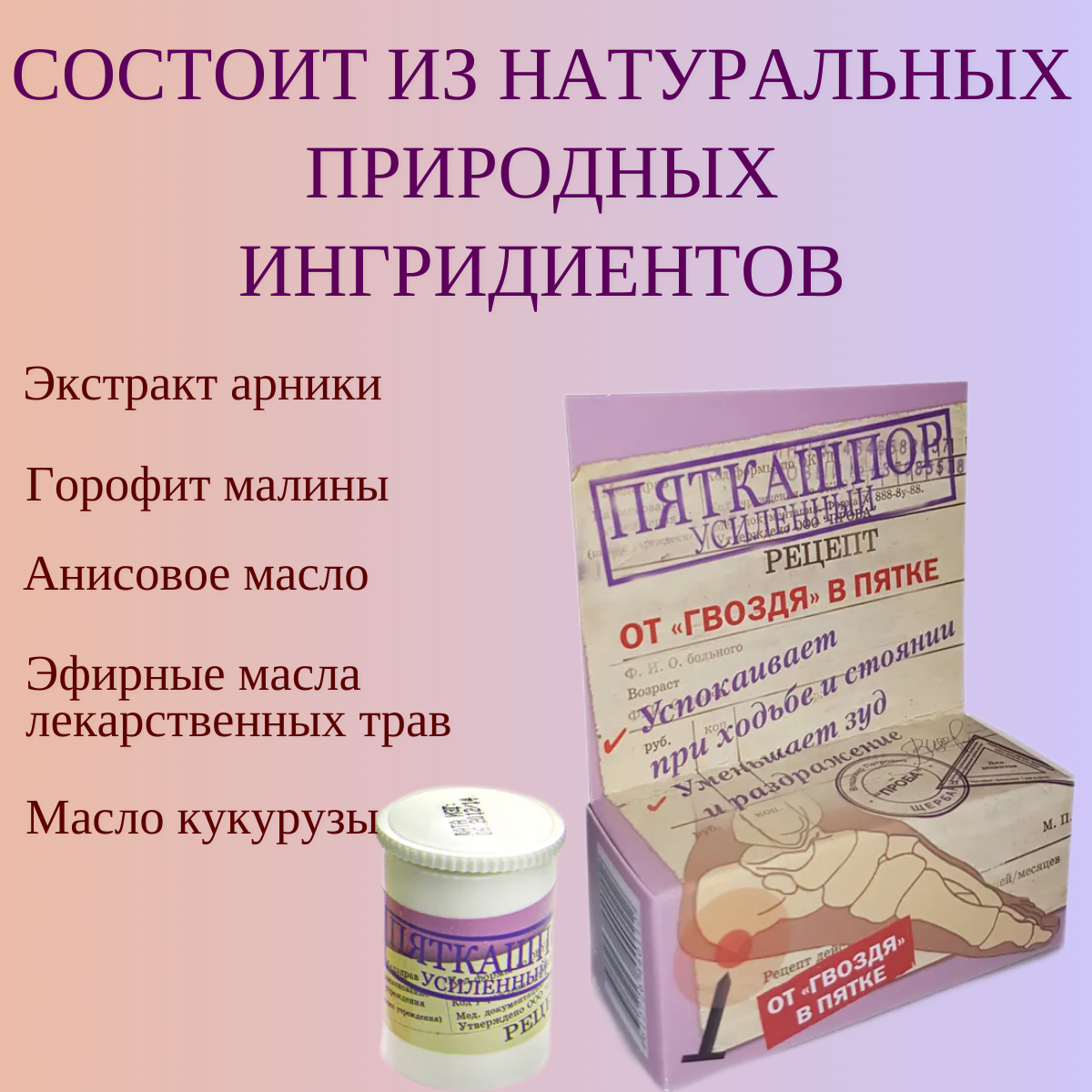 Крем усиленный для стоп "Пяткашпор" от пяточной шпоры информация: