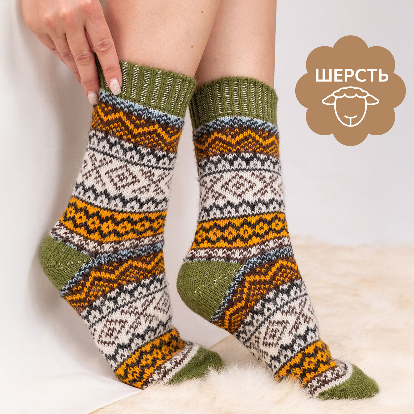 10 цен на Носки женские шерстяные с рисунком HappyFox. HFBN2317 размер 37-40. цвет орнамент.авокадо