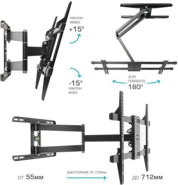 Kromax DIX-20 черный 22"-65" макс.45кг настенный поворотно-выдвижной и наклонный 5 434 ₽