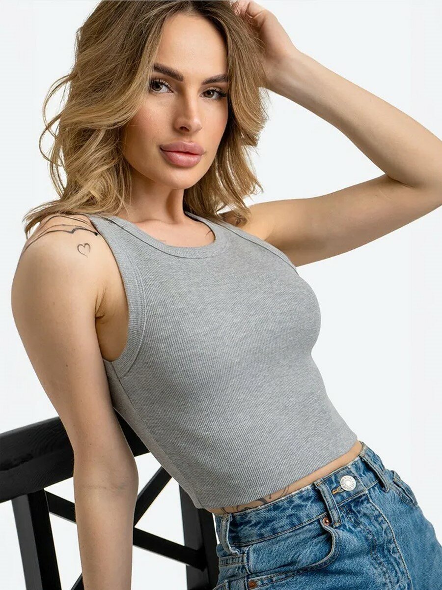 10 цен на Майка женская в рубчик серая хлопок летняя бесшовная