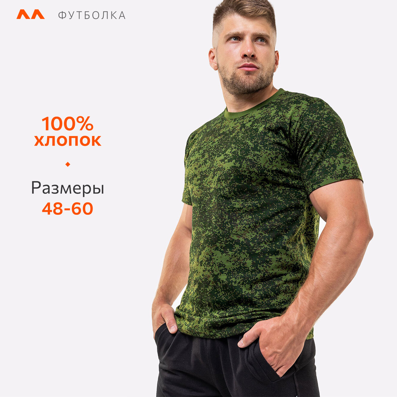 10 цен на Футболка камуфляжная защитная хлопок HF9113 цифра.т.зеленый 54