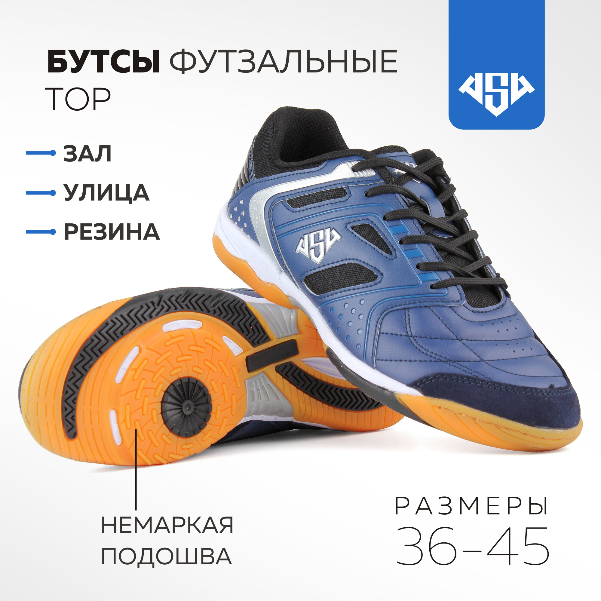 Футзалки AS4, размер 40, желтый, синий, черный 2 492 ₽