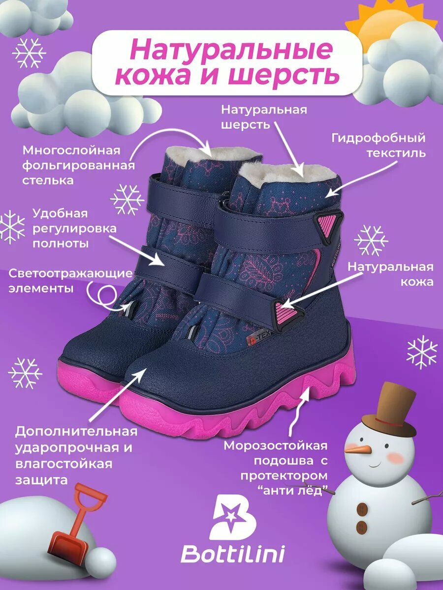 Ботинки зимние BOTTILINI, размер 26 / 17 см, фиолетовый, розовый 4 162 ₽