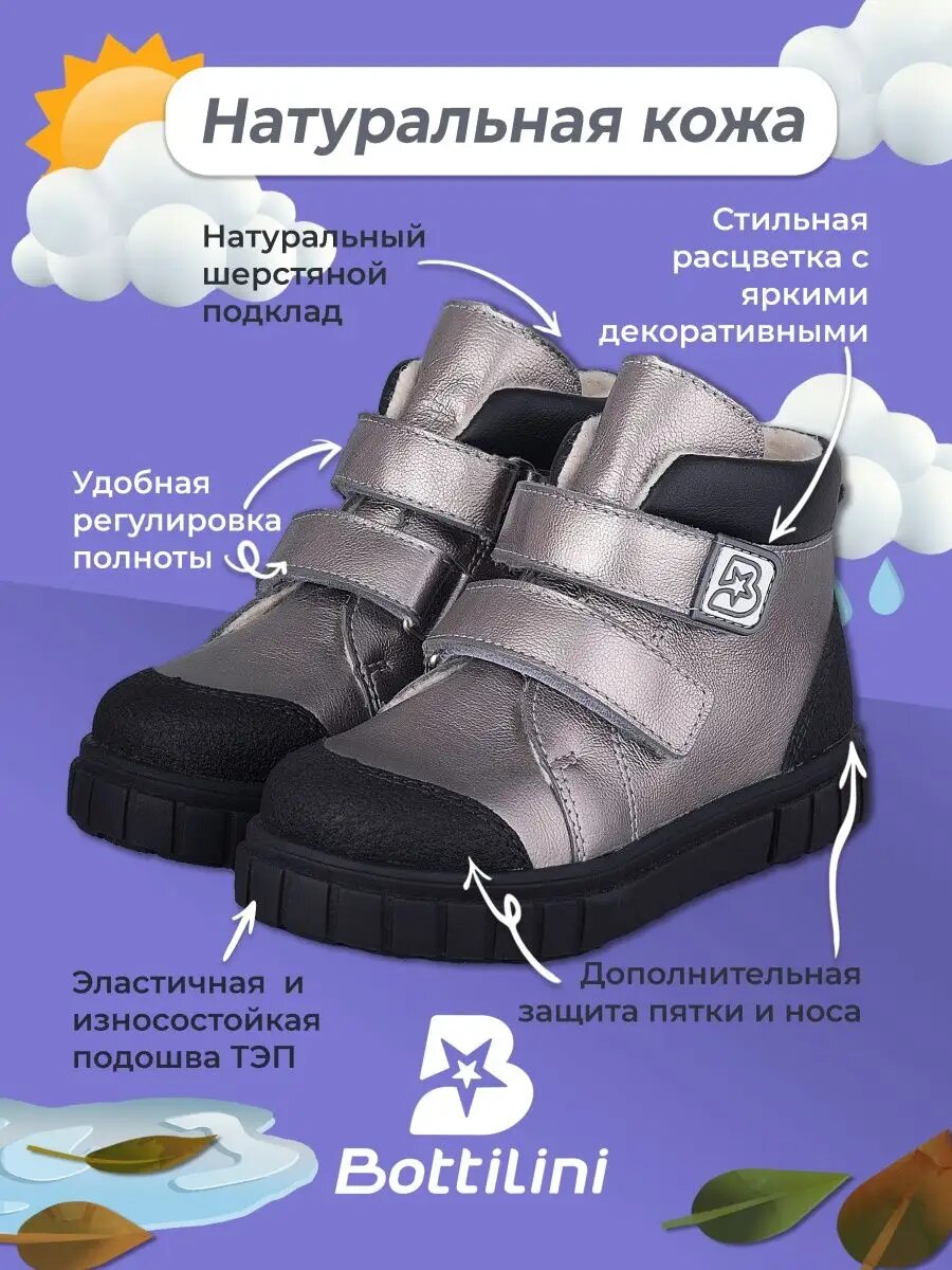 Отзывы на Ботинки демисезонные BOTTILINI, размер 25 / 15,5 см, серебряный, черный