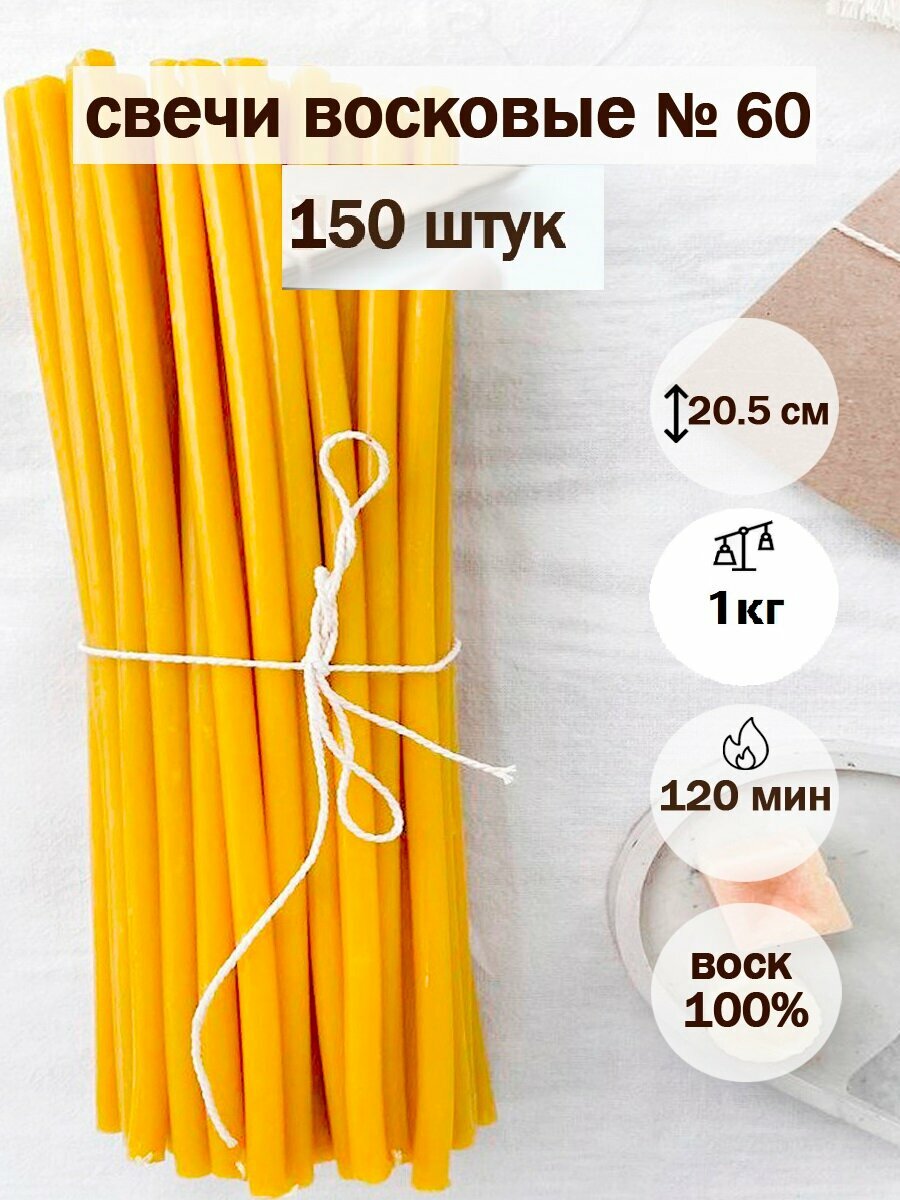 Свечи церковные Даниловские, восковые, освященные, №60, 20см, 150 штук, аромат меда 638 ₽