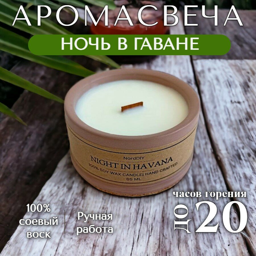 Свеча ароматическая с деревянным фитилём "Ночь в Гаване" из соевого воска, 65 мл информация: