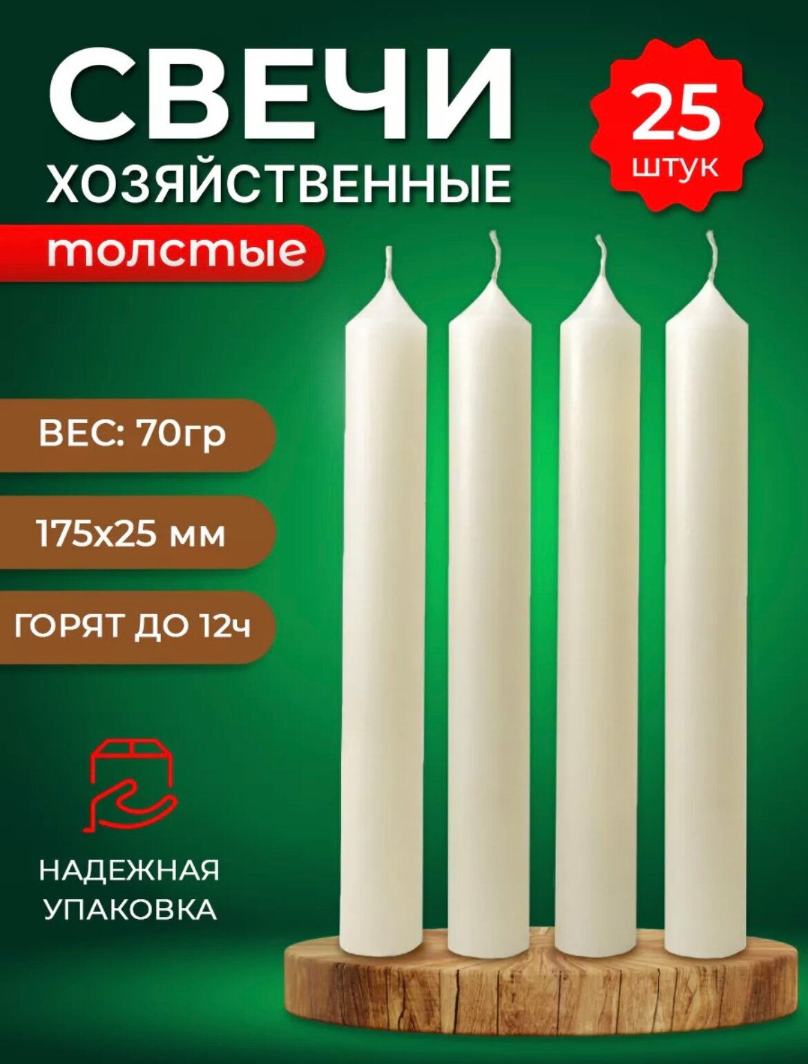 Свечи парафиновые хозяйственные 70 гр. / Свечи бытовые Столбик набор 25 шт. информация: