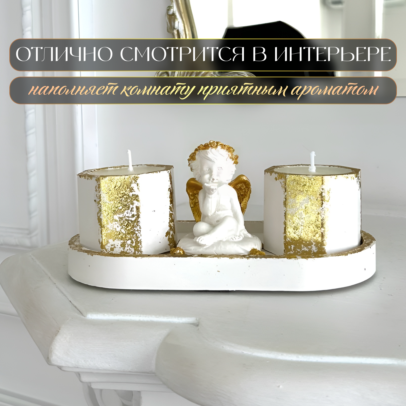 Свечи ароматические в подсвечниках с ангелом / интерьерные свечи/ подарочный набор/ натуральный воск / подарок / сувенир информация: