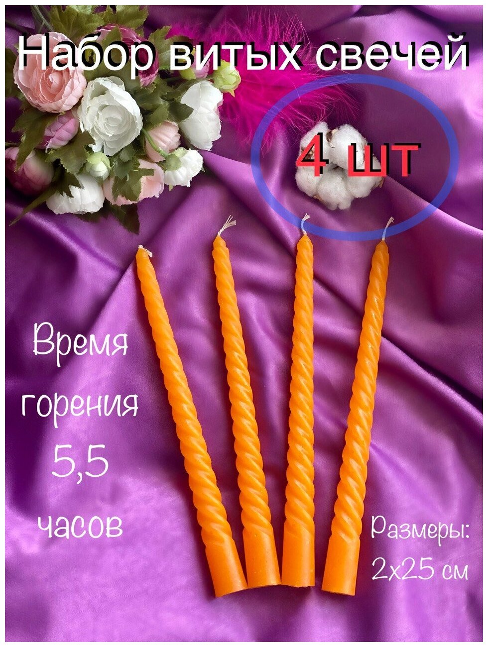 10 цен на Набор витых свечей 4 штуки, оранжевые