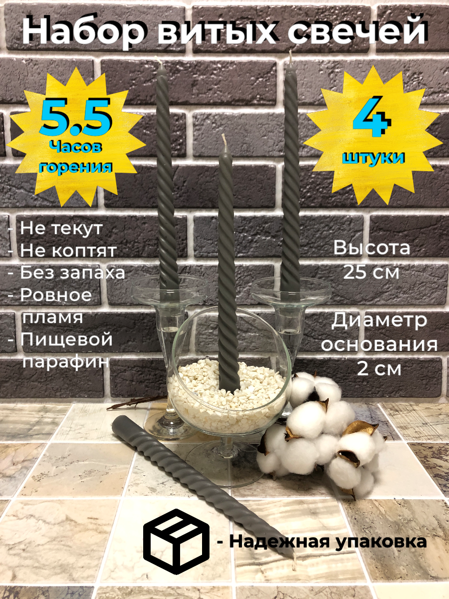 Набор витых свечей 4 штуки, графит информация: