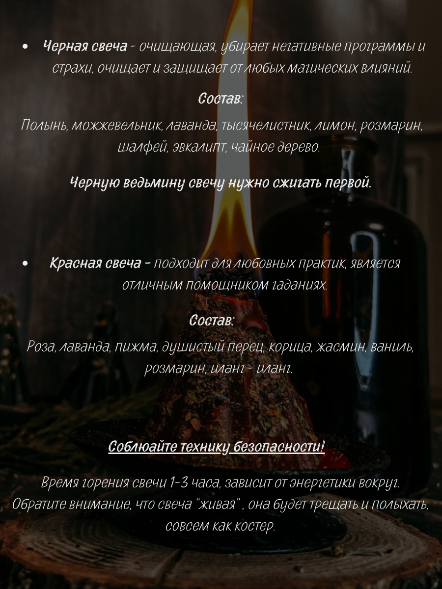 | Дополнительная информация | Помните, что в день нужно жечь одну свечу. |