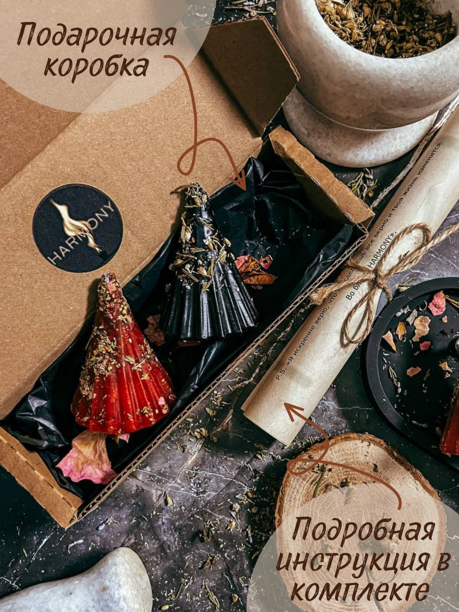 Подарочный набор программных свечей с травами, черная и красная на любовь, натуральный пчелиный воск информация: