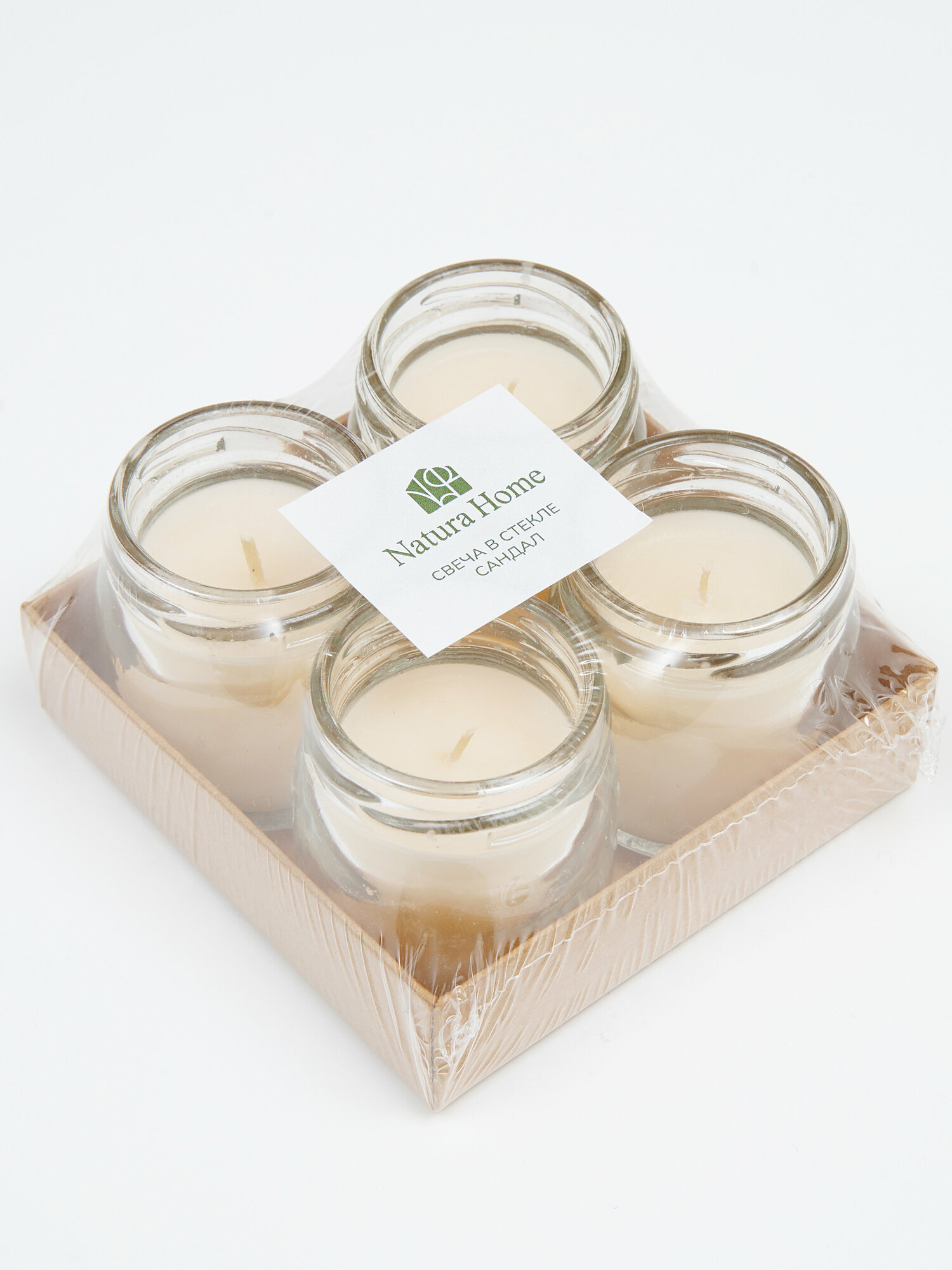 Свечи ароматические интерьерные в стекле Natura Home, 4 штуки в наборе, сандал информация: