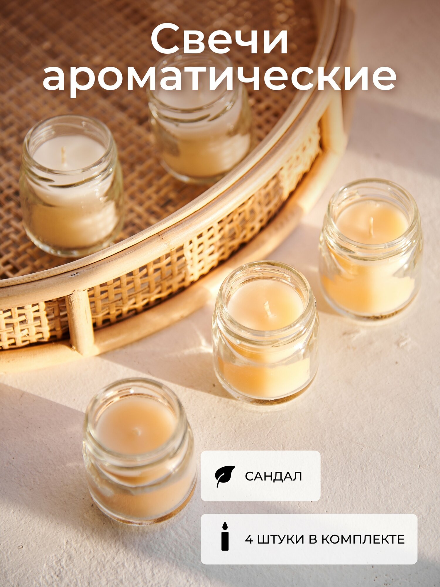 10 цен на Свечи ароматические интерьерные в стекле Natura Home, 4 штуки в наборе, сандал