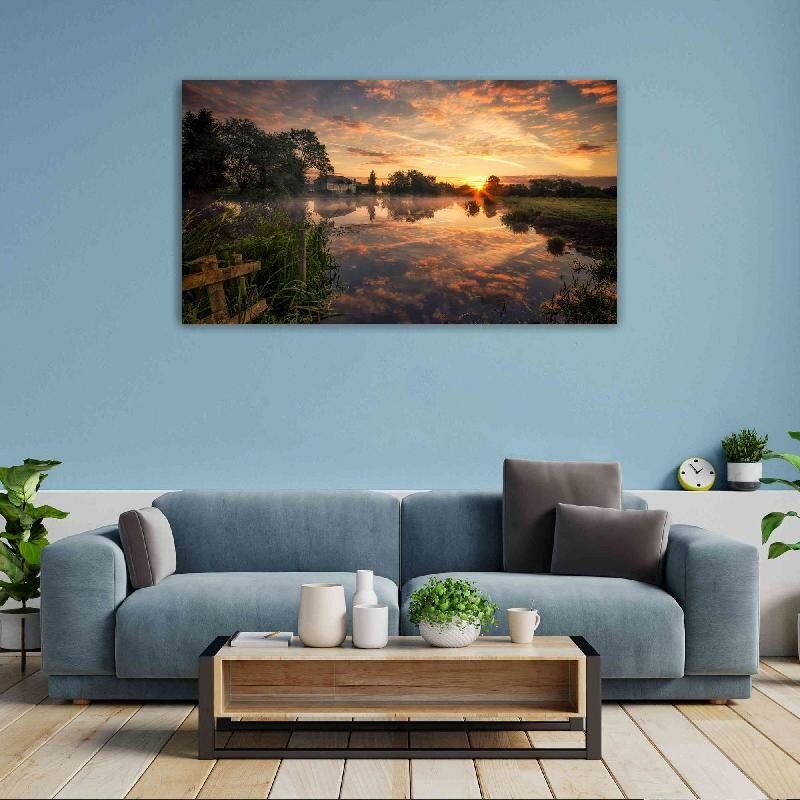 Картина на холсте 60x110 Альянс Лес "Утро речка рассвет" на подрамнике / интерьер/ декор информация: