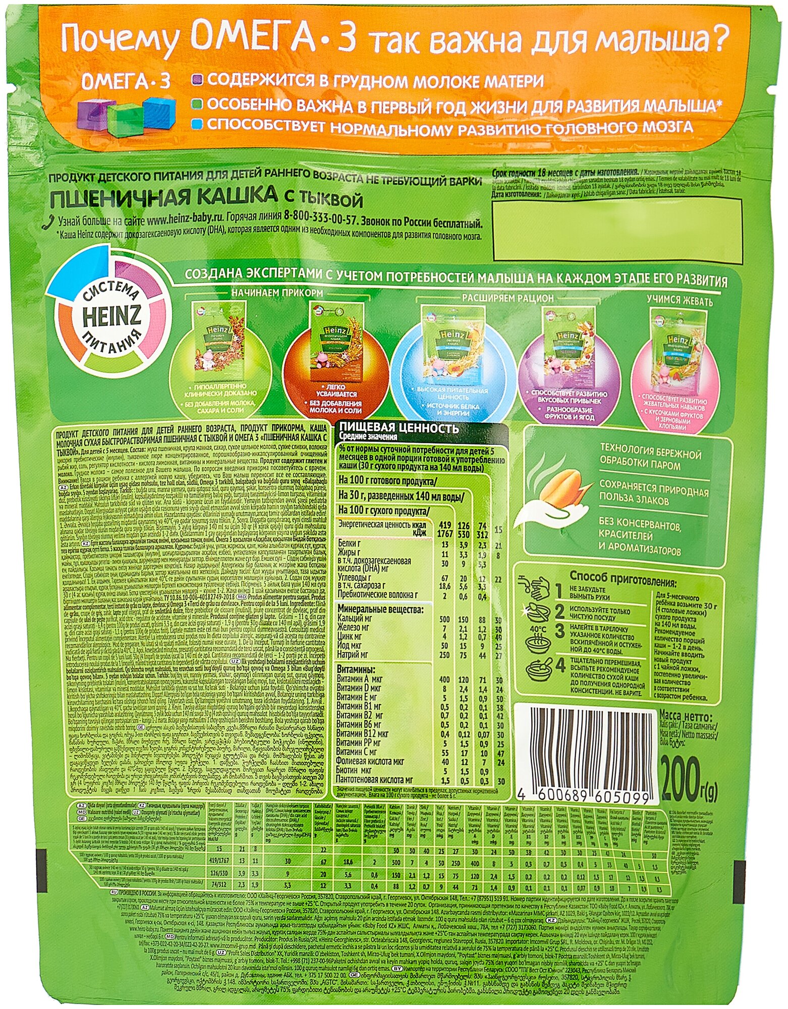 HEINZ Кашка Я расту Пшеничная с Тыквой с Молоком {c 5 мес} {пауч} 200г информация: