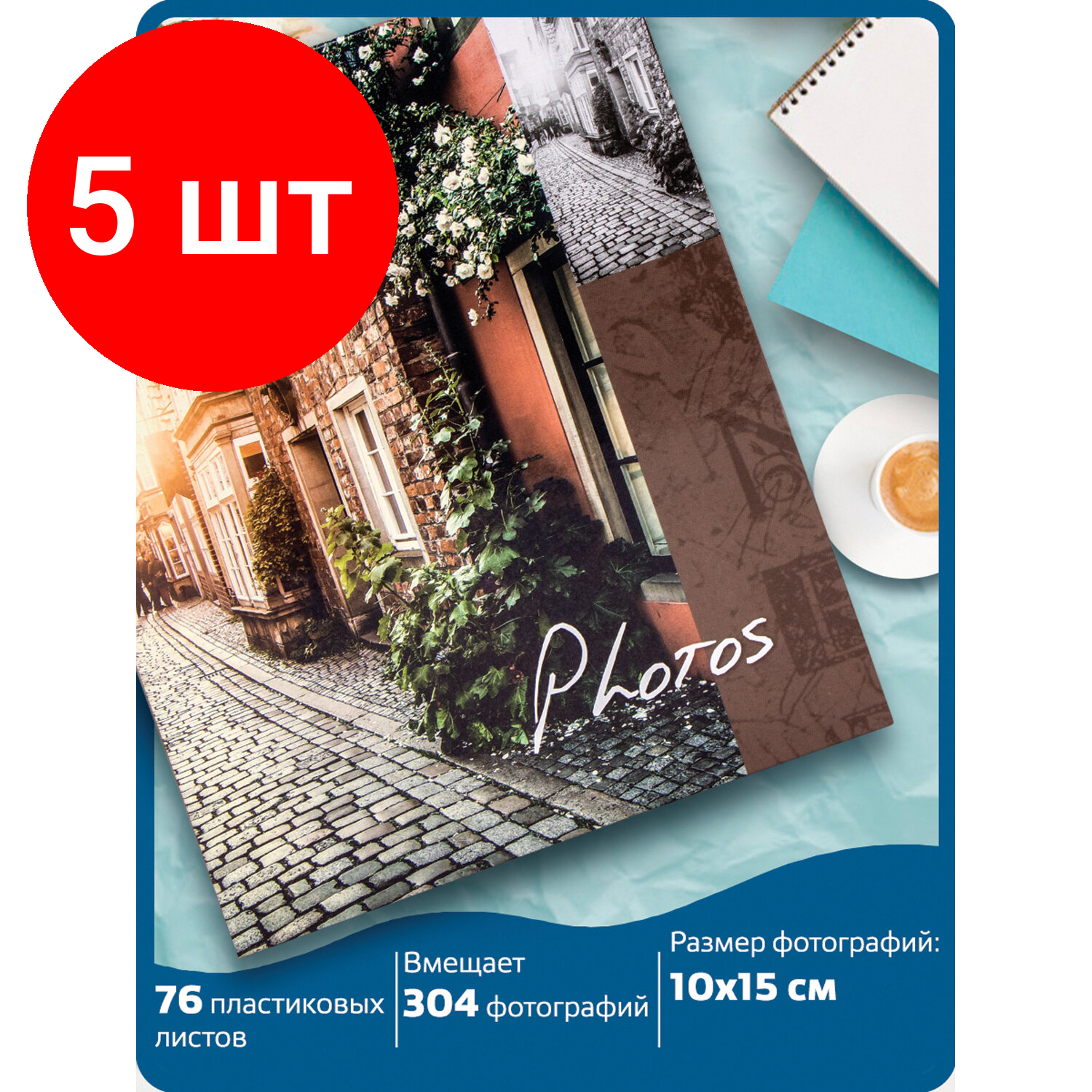 Комплект 5 шт, Фотоальбом BRAUBERG "Итальянские улочки" на 304 фото 10х15 м, твердая обложка, термосклейка, 391167 информация: