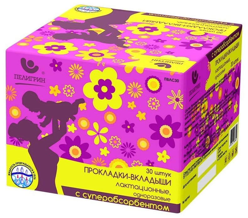 Пелигрин, Прокладки-вкладыши лактационные одноразовые с суперабсорбентом, набор 60 штук