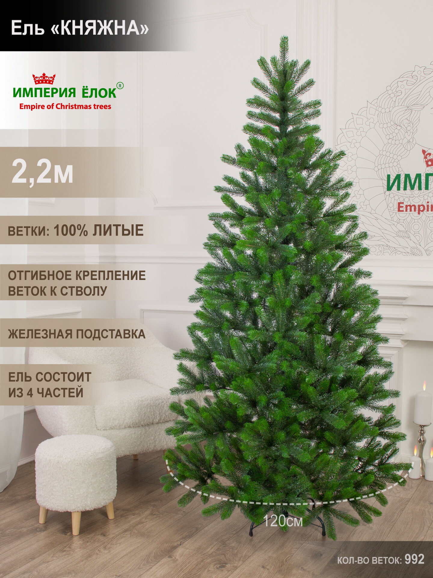 Елка искусственная новогодняя литая напольная 220 см Княжна информация: