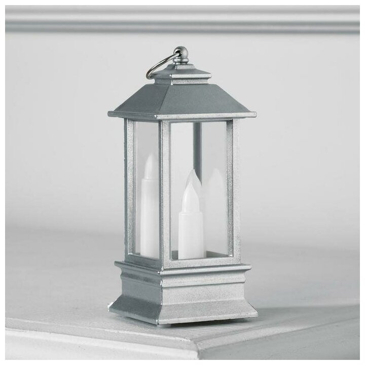 10 цен на Светодиодная фигура «Серебристый фонарь со свечками» 5.5 × 13 × 5.5 см, пластик, батарейки AG13х3, свечение тёплое белое