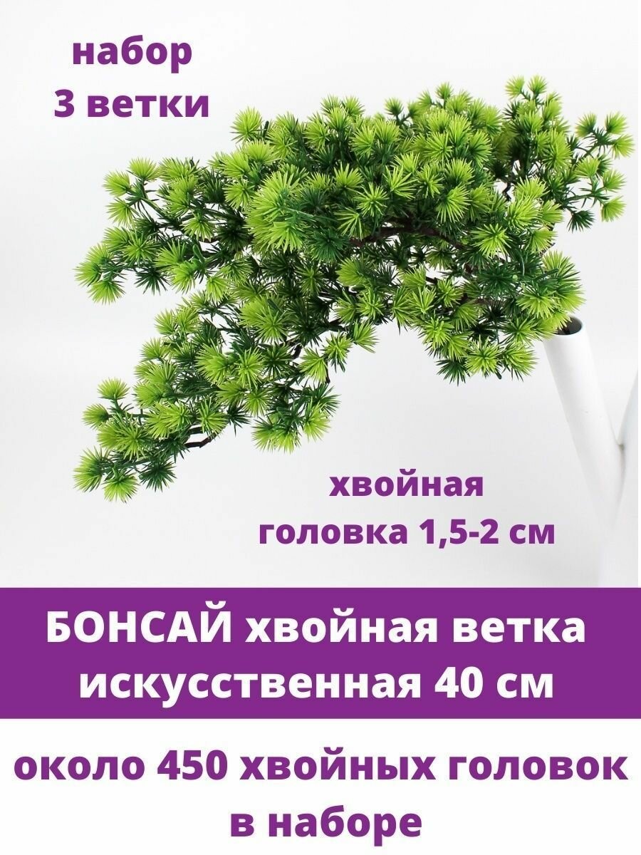 Бонсай, хвойная/еловая ветка искусственная, декор зимний, рождественский, набор 3 ветки, 32 см информация: