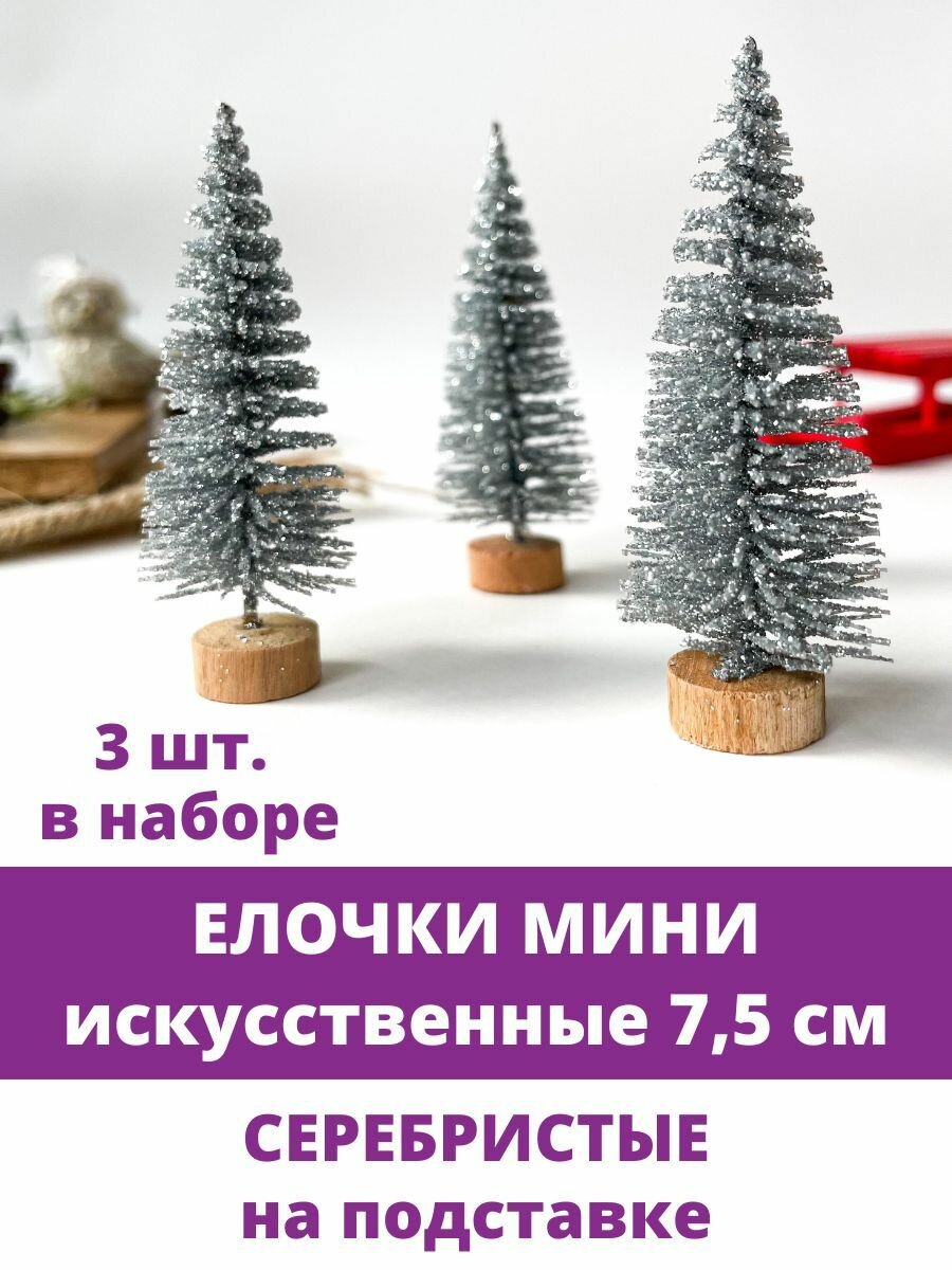 Елка искусственная, Елочка мини, декор новогодний, рождественский, серебристый 7,5 см, набор 3 штуки информация: