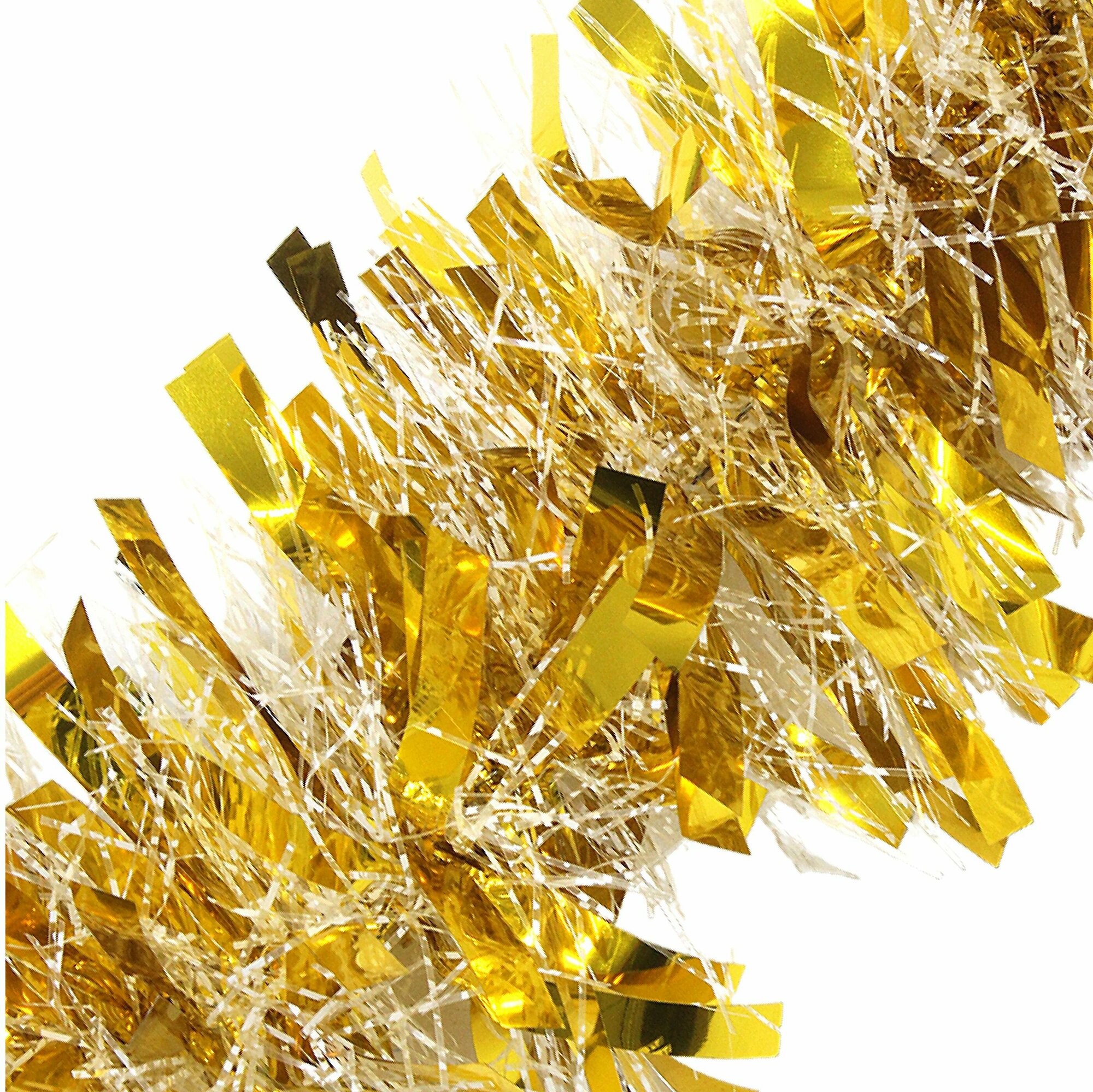 Новогодняя мишура (3 шт.) E-14 блестящая золото с белым, длина 2.5 метра, ширина 10 см. информация: