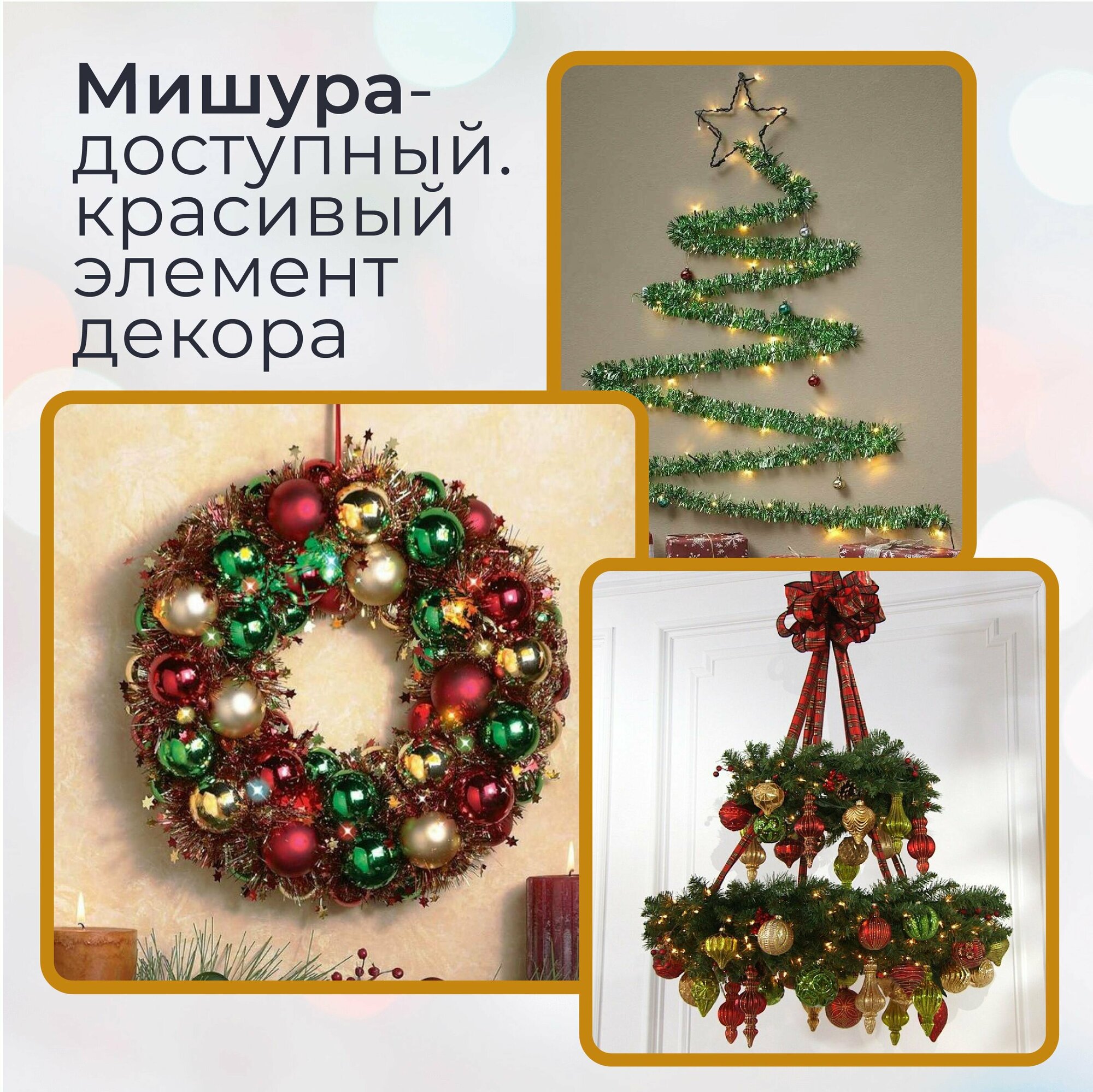 Новогодняя мишура (3 шт.) E-14 блестящая золото с белым, длина 2.5 метра, ширина 10 см. 431 ₽