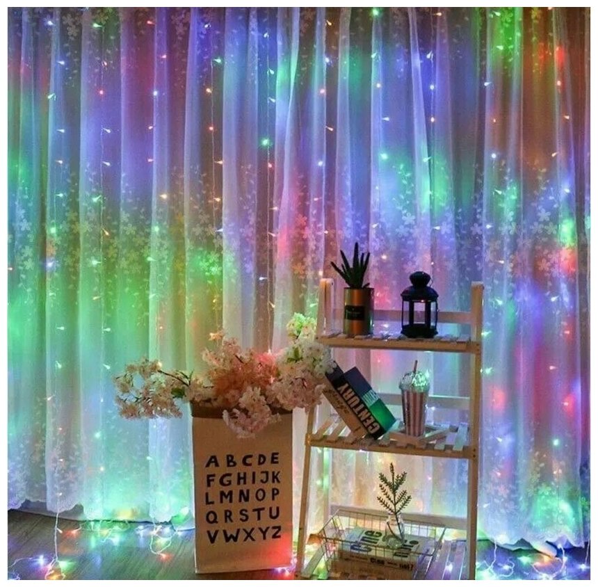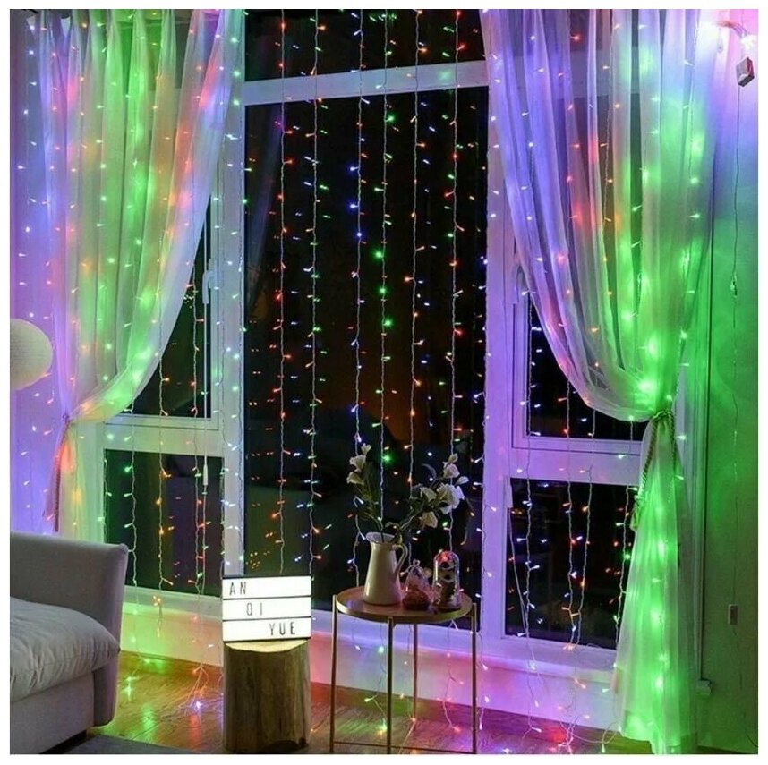 Гирлянда светодиодная Занавес/Штора/на окно / Новогодняя гирлянда дождик 2 на 2 метра Разноцветная информация: