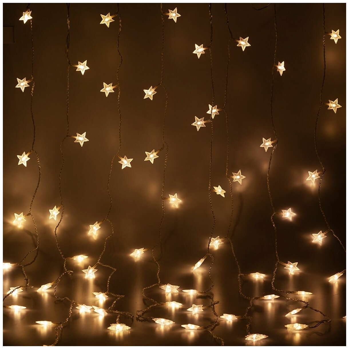 Светодиодная новогодняя гирлянда Звездочки 1,2*1,3 м теплый белый 64LED IP20