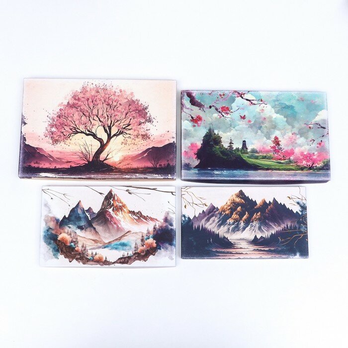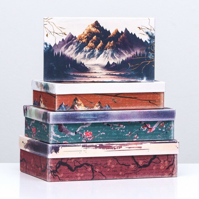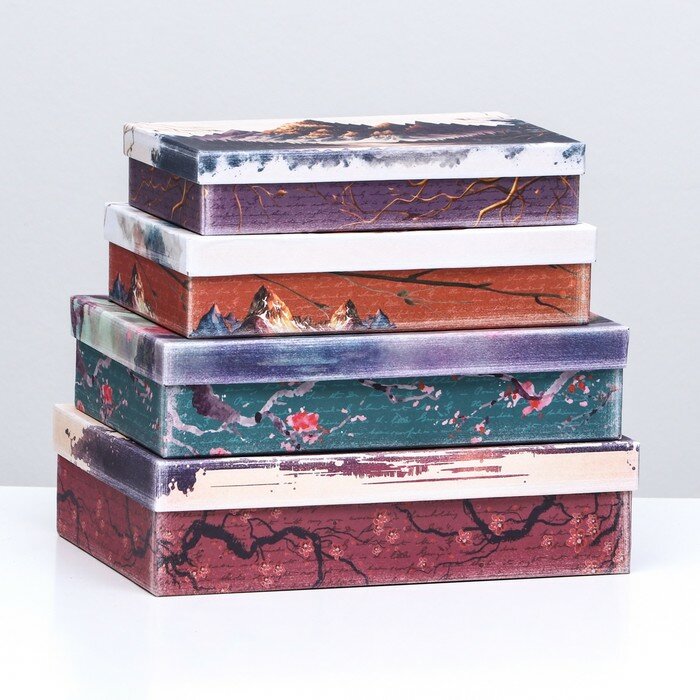 10 цен на Набор коробок прямоугольных 4 в 1 ,"Природные пейзажи", 30 х 20 х 8 - 24 х 14 х 5 см