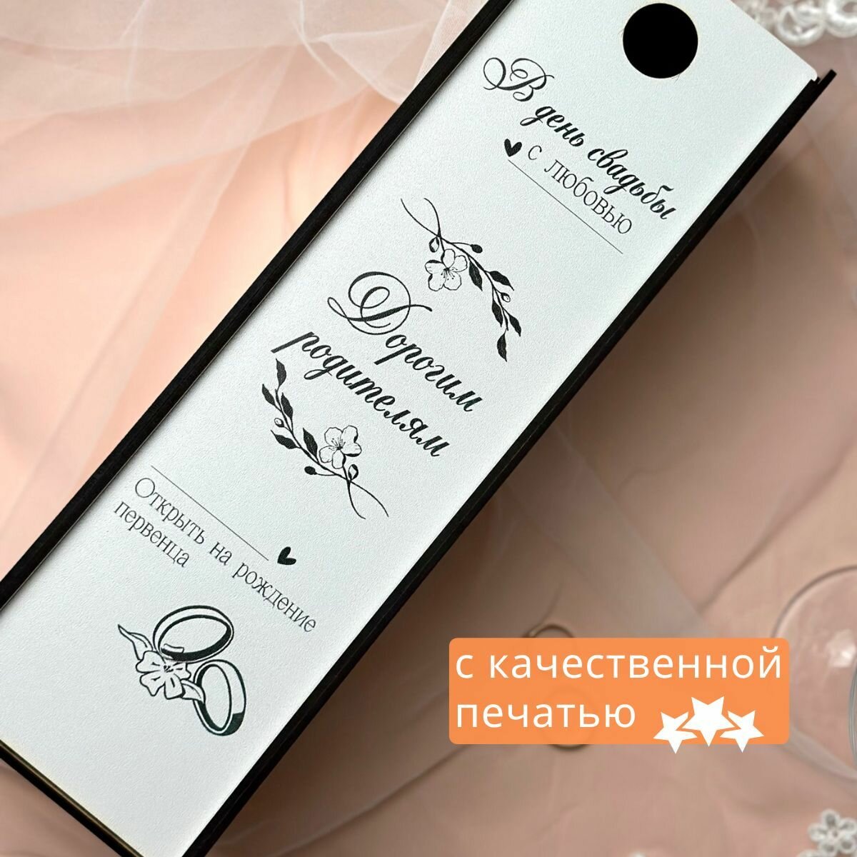 Подарочная коробка деревянная для вина Дорогим родителям" Свадьбатека информация: