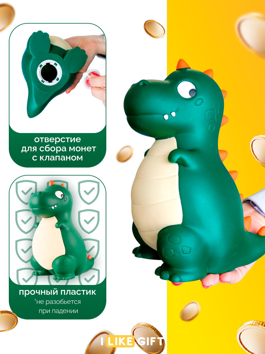Копилка для денег "Дино", зеленый, 14х16х18 см, пластик, для монет и купюр 641 ₽