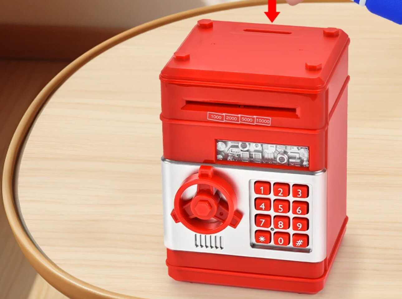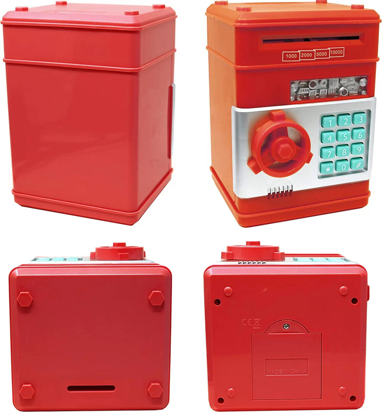 Отзывы на Копилка-сейф для денег /Электронный банкомат с купюроприемником и кодовым замком/ На батарейках/Сейф копилка электронная/Детская/Красный/19х19х13.5см