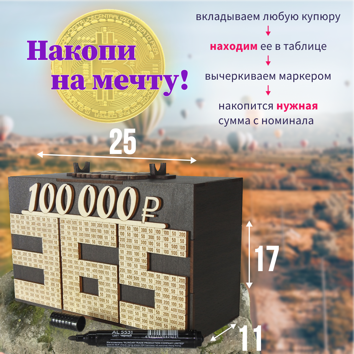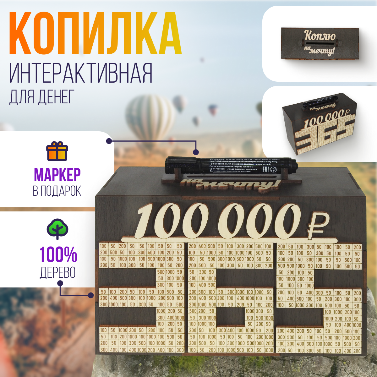 | Дополнительная информация | для денег, деревянная, интерактивная, 365 дней, коплю на мечту, копилка, из Тик Тока, с любовью, подарок, для родных, для близких, для любимых, для детей, интерьер, лучший подарок |