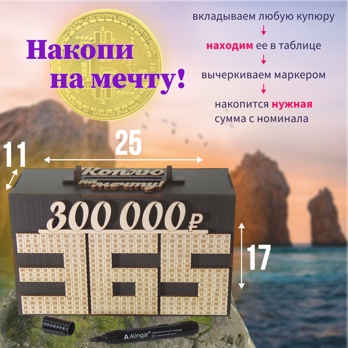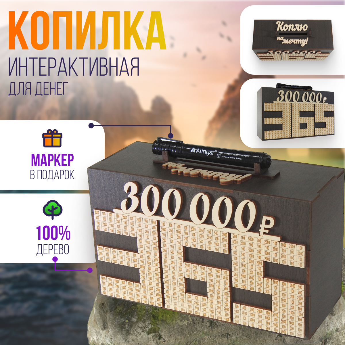 | Дополнительная информация | для денег, деревянная, интерактивная, 365 дней, коплю на мечту, копилка, из Тик Тока, с любовью, подарок, для родных, для близких, для любимых, для детей, интерьер, лучший подарок |