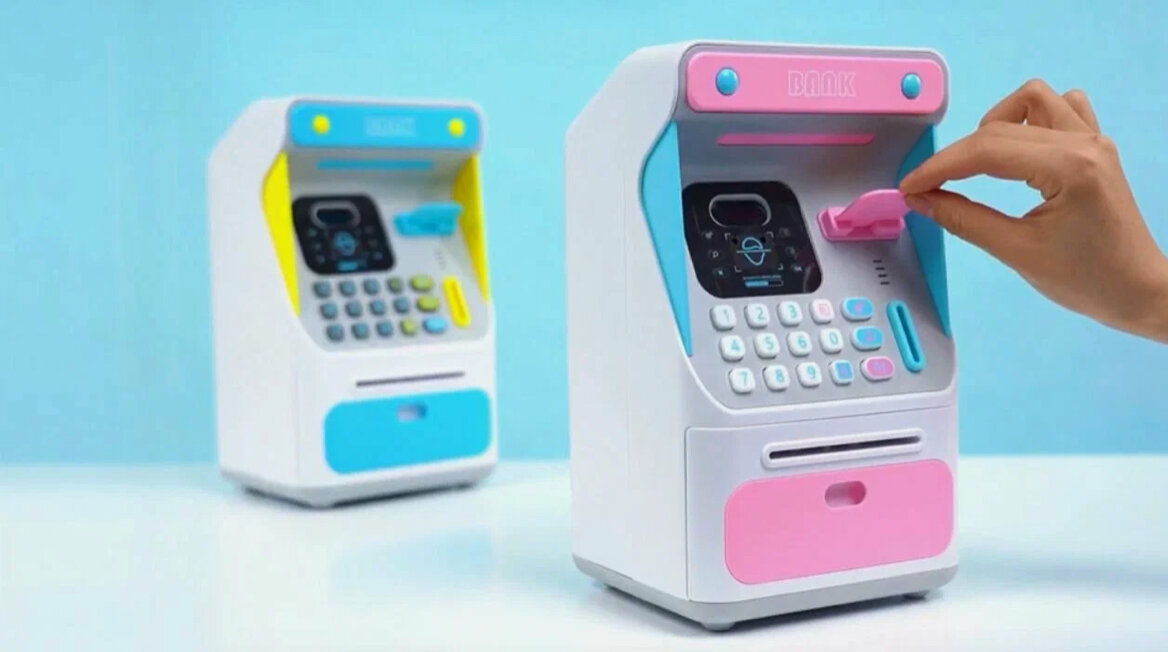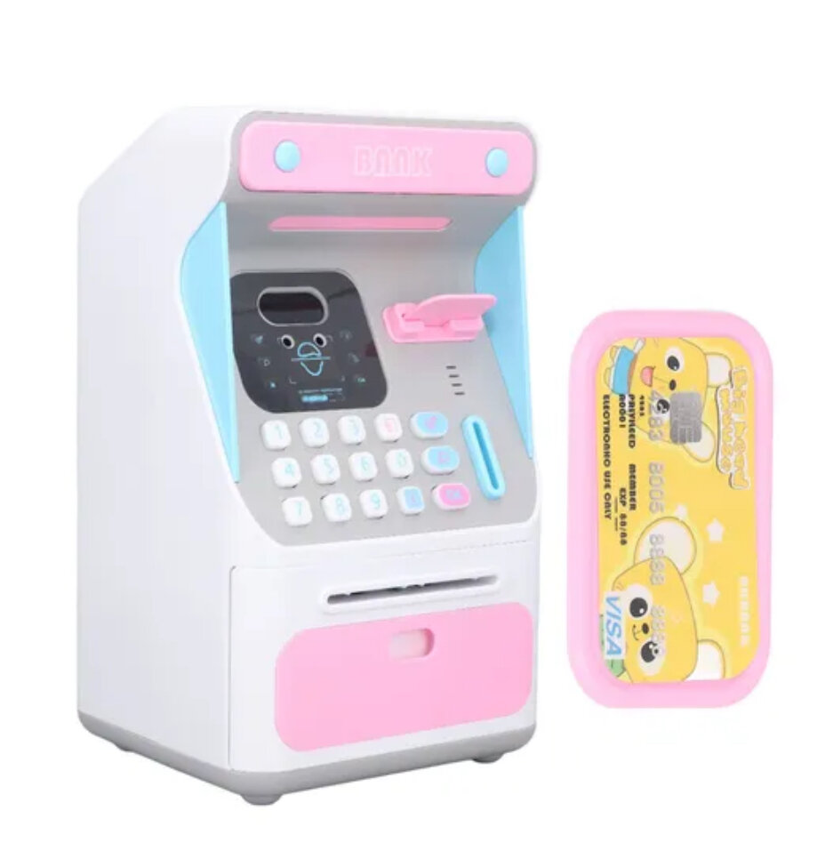 10 цен на Интерактивная копилка-банкомат с распознованием лица для купюр и монет, розовая.