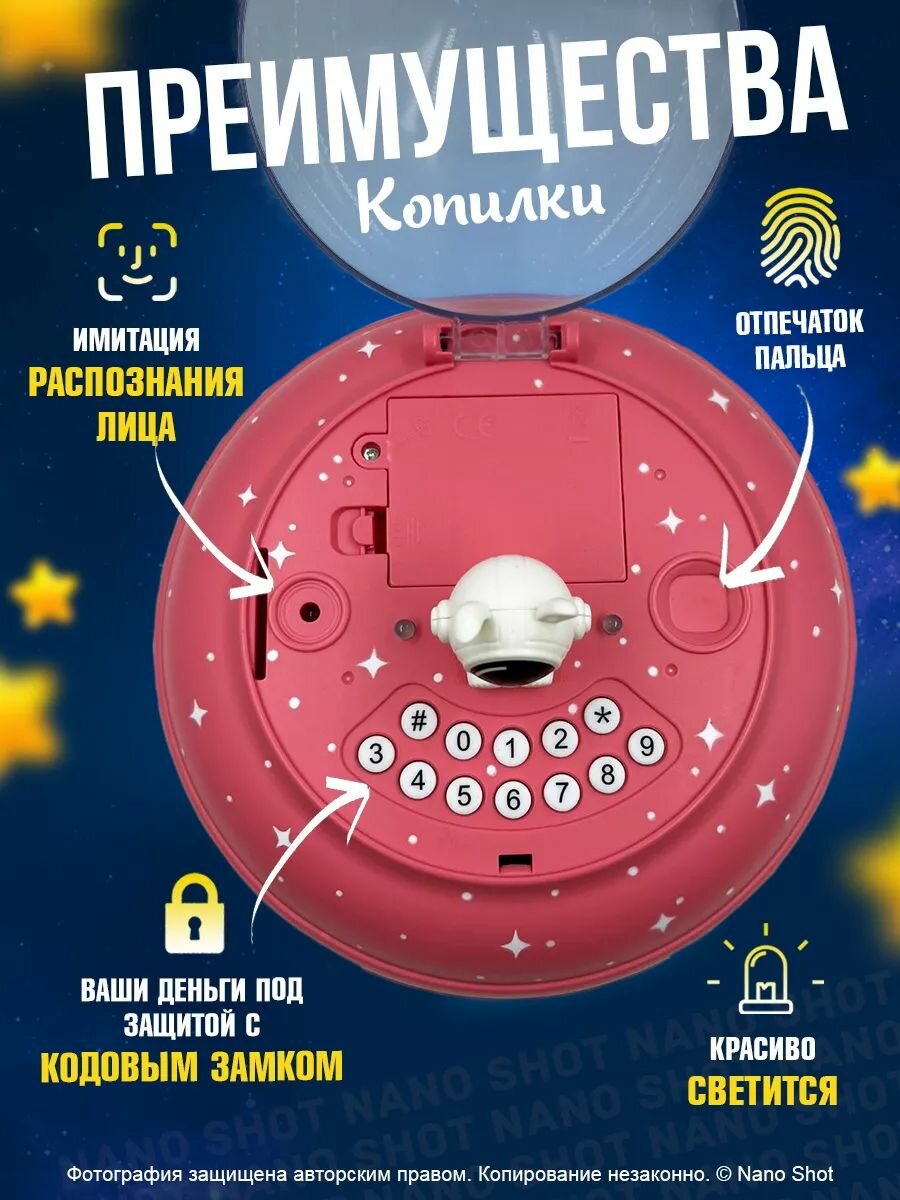 Отзывы на Интерактивная музыкальная электронная копилка-сейф Летающая тарелка НЛО с распознованием лица, с купюроприёмником и с кодовым замком, розовая